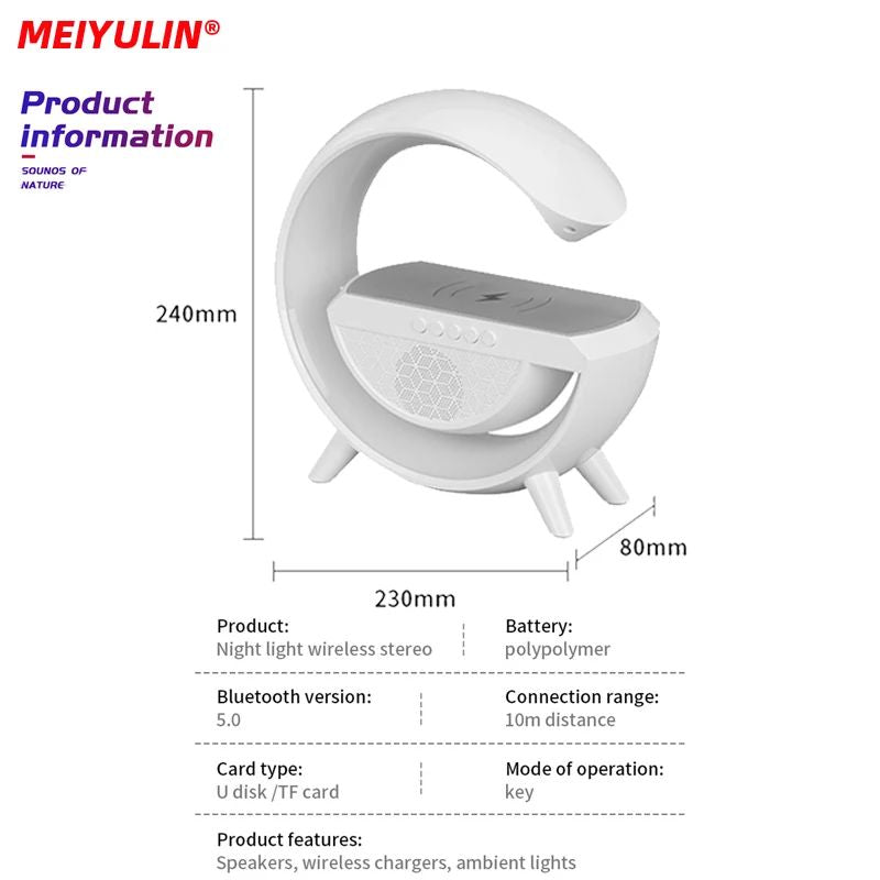 G Lamp Smart Bluetooth Speaker Wireless Fast Charger Station LED RGB Desk Light Support TF Card AUX for iPhone 14/13 Samsung Powerbank